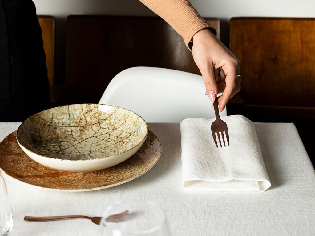 À table, la palette de couleurs est fondamentale. L'harmonie de la mise en place repose sur le choix des tons. Les nuances de la vaisselle Arthur Krupp permettent de jouer au mieux avec le style et la finition des couverts Sambonet: un Mix & Match sans faille!