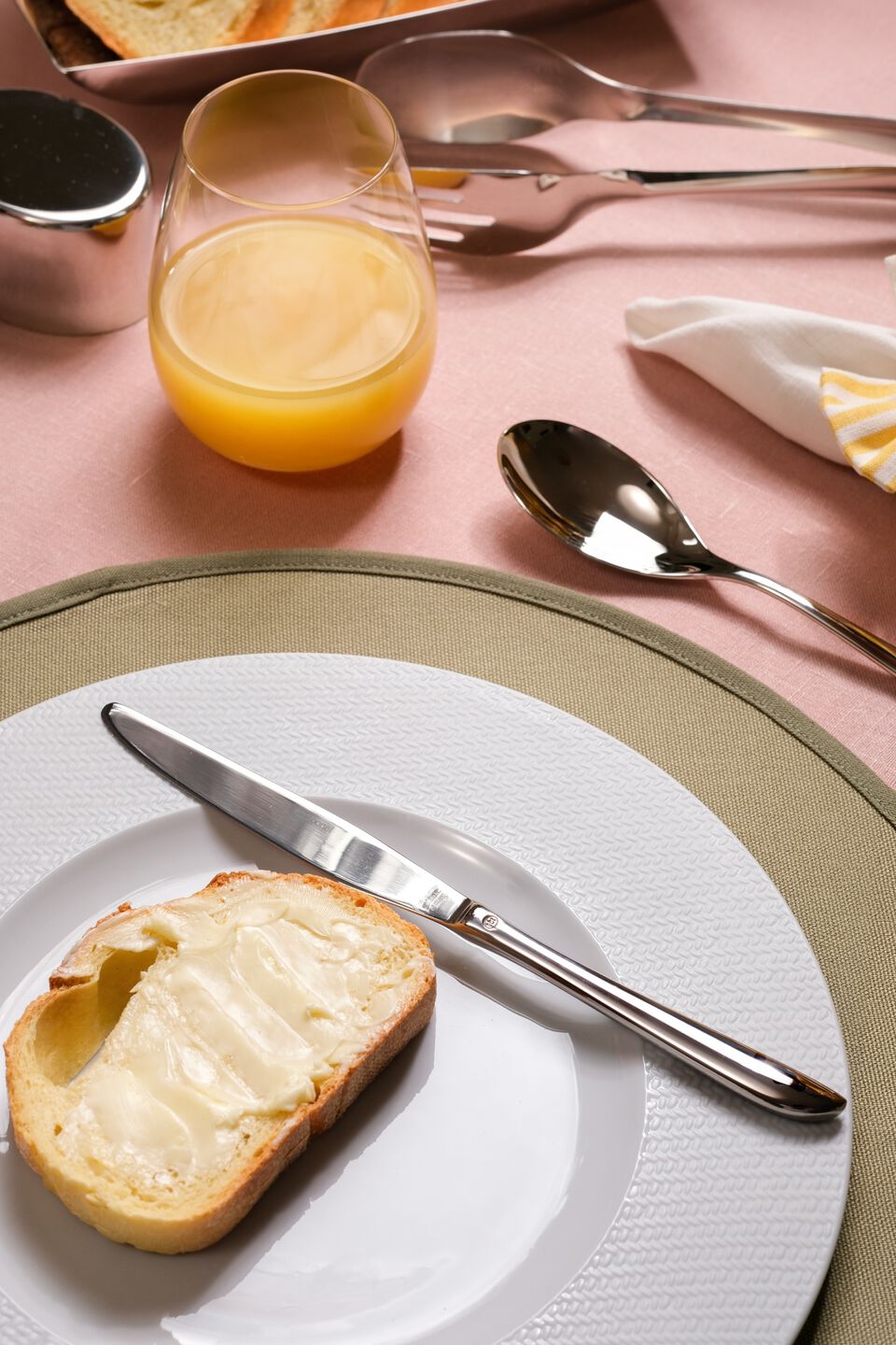 Les couverts Sambonet deviennent un élément central d’une table harmonieuse, capable d’accompagner le service avec discrétion et élégance. Les finitions polies, satinées ou PVD offrent différentes interprétations de la saison, tout en conservant un rendu cohérent et contemporain.